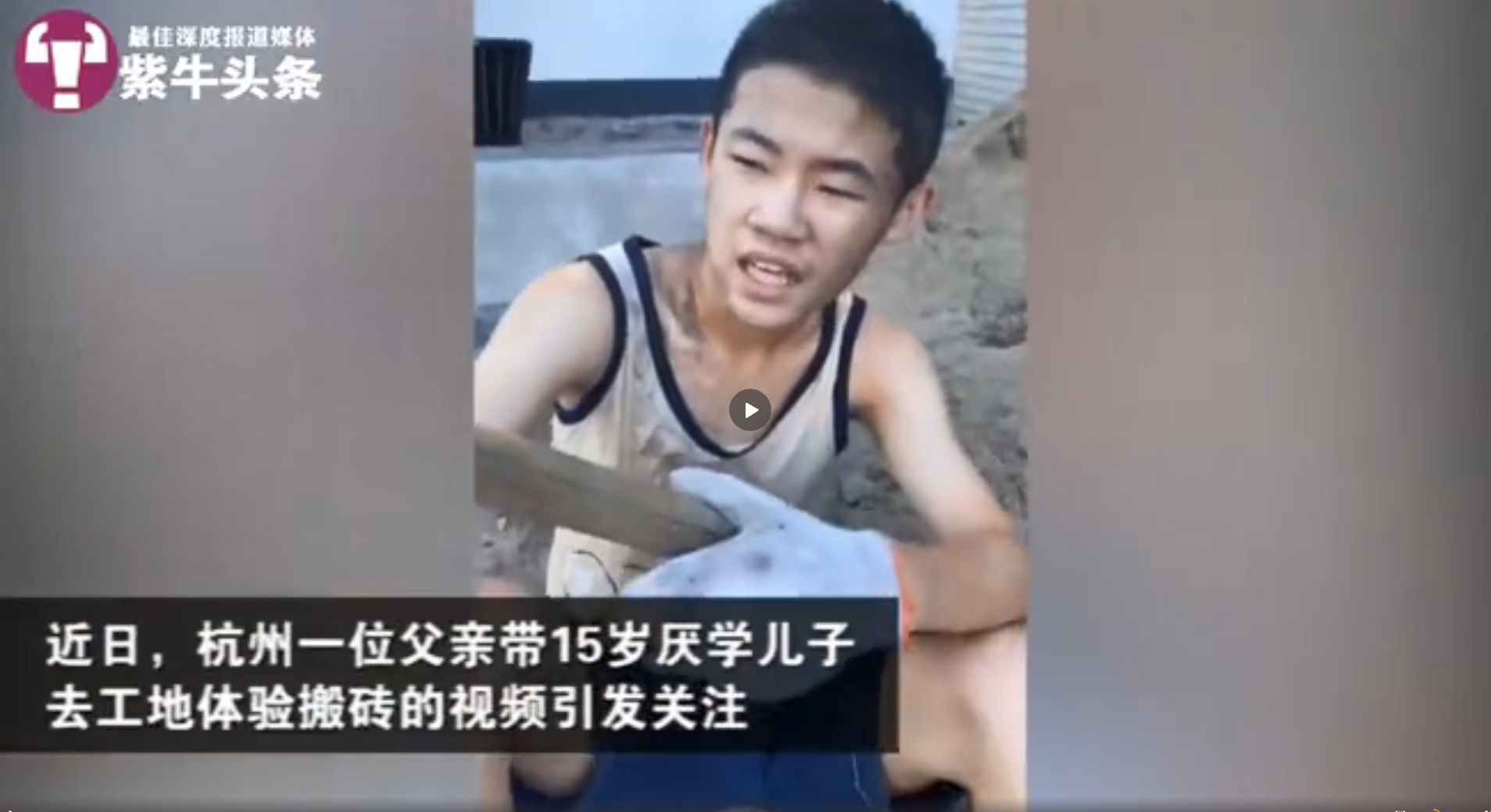 四月份时,一段视频突然爆红网络,一名父亲把自己厌学症的孩子送到工地干活。视频中的男孩喘着粗气,身上全是泥沙,瘫坐在地上。爸爸问他:“累不累啊?读书好还是干活好?”小男孩答道:“读书好,读书好。”